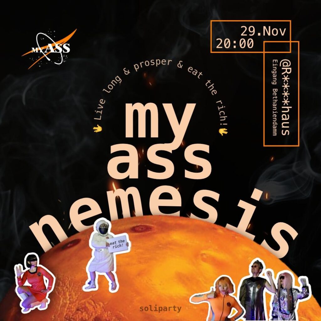 Im Zeichen intergalaktischer Solidarität launcht das neueste Programm der gemeinwohlorientierten Grunewald Space Agency (GSA) das Antinationale Space Shuttle myASS. Mit neuester Technologie ausgestattet, befördert die myASS visionäre Milliardäre zu ihrem Sehnsuchtsort: dem Mars!